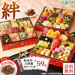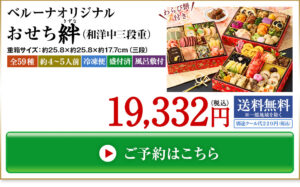 プレゼント付!ベルーナおせち絆(和洋中三段重)【12月29日お届け】19,332円