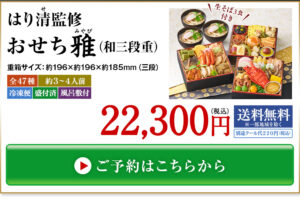 プレゼント付!はり清監修おせち雅(和三段重)【12月29日お届け】 22,300円
