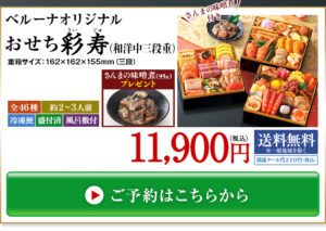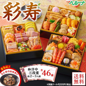 プレゼント付!ベルーナおせち彩寿(和洋中三段重)【12月29日お届け】11,900円