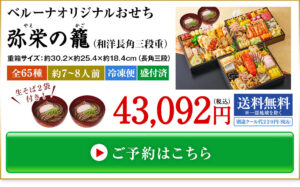 プレゼント付!ベルーナおせち弥栄の籠(和洋三段重)【12月29日お届け】43,092円