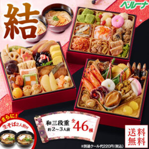プレゼント付!ベルーナおせち結(和三段重)【12月29日お届け】11,900円